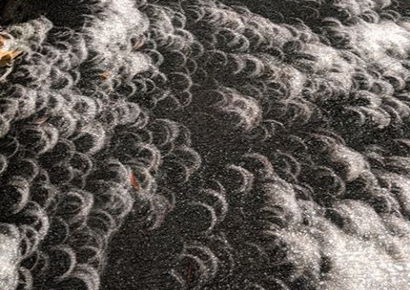 For Thursday's eclipse, the pinhole effect also happened when light passed through patches between leaves of trees and projected crescent-shaped patterns mirroring the eclipse's "ring of fire" on the ground.