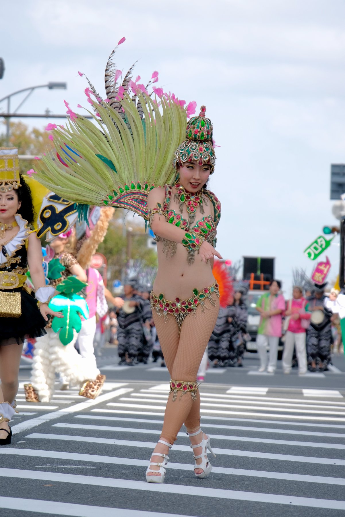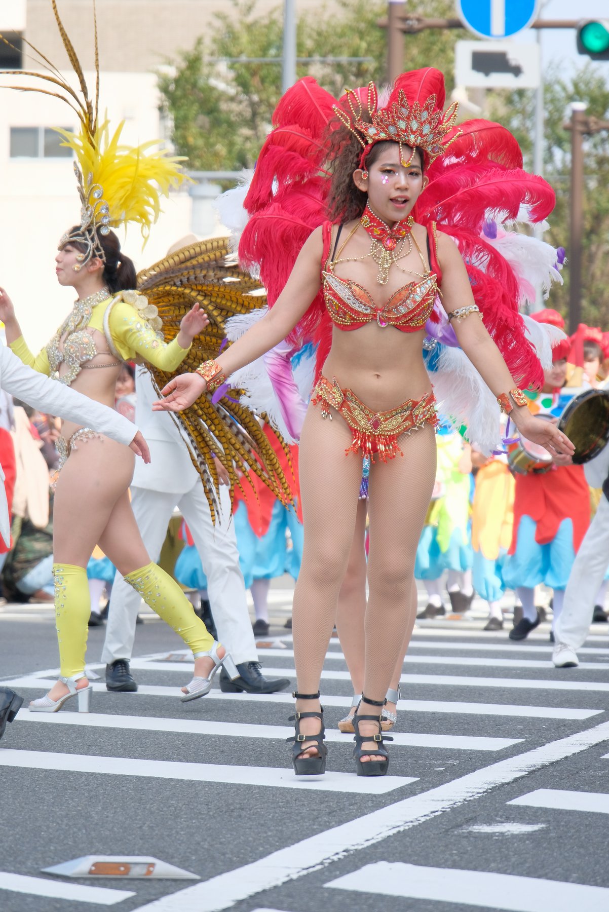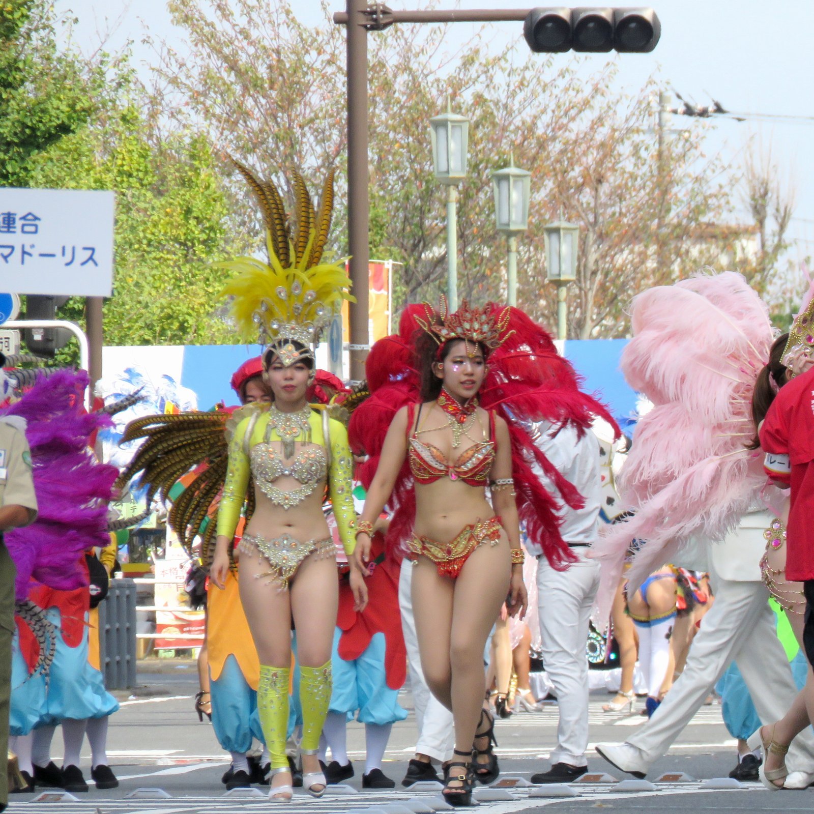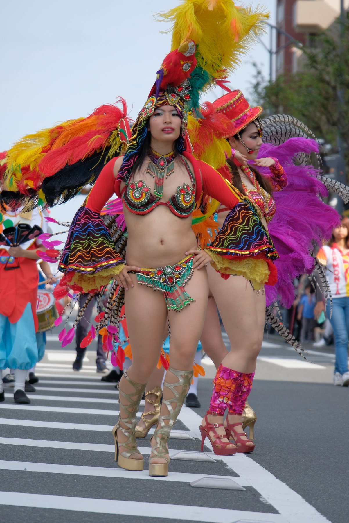 Three teams of Asakusa Samba Carnival, which is said to decide the top of Japan, will appear in the big parade of the event, for 21 times. The dancers in gorgeous costumes and the performances of the bateria (percussion instrument) corps greatly enlivened the people along the road.