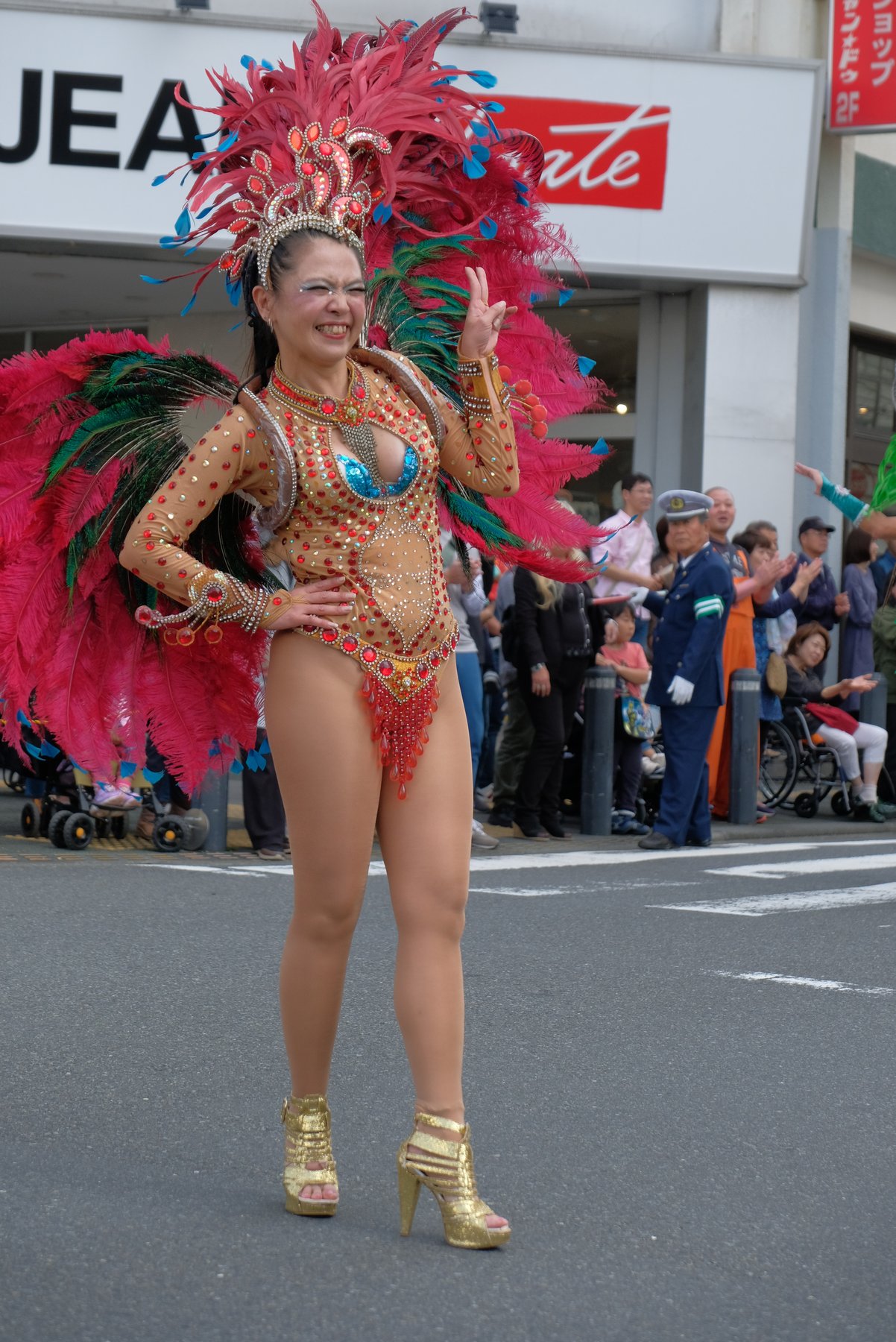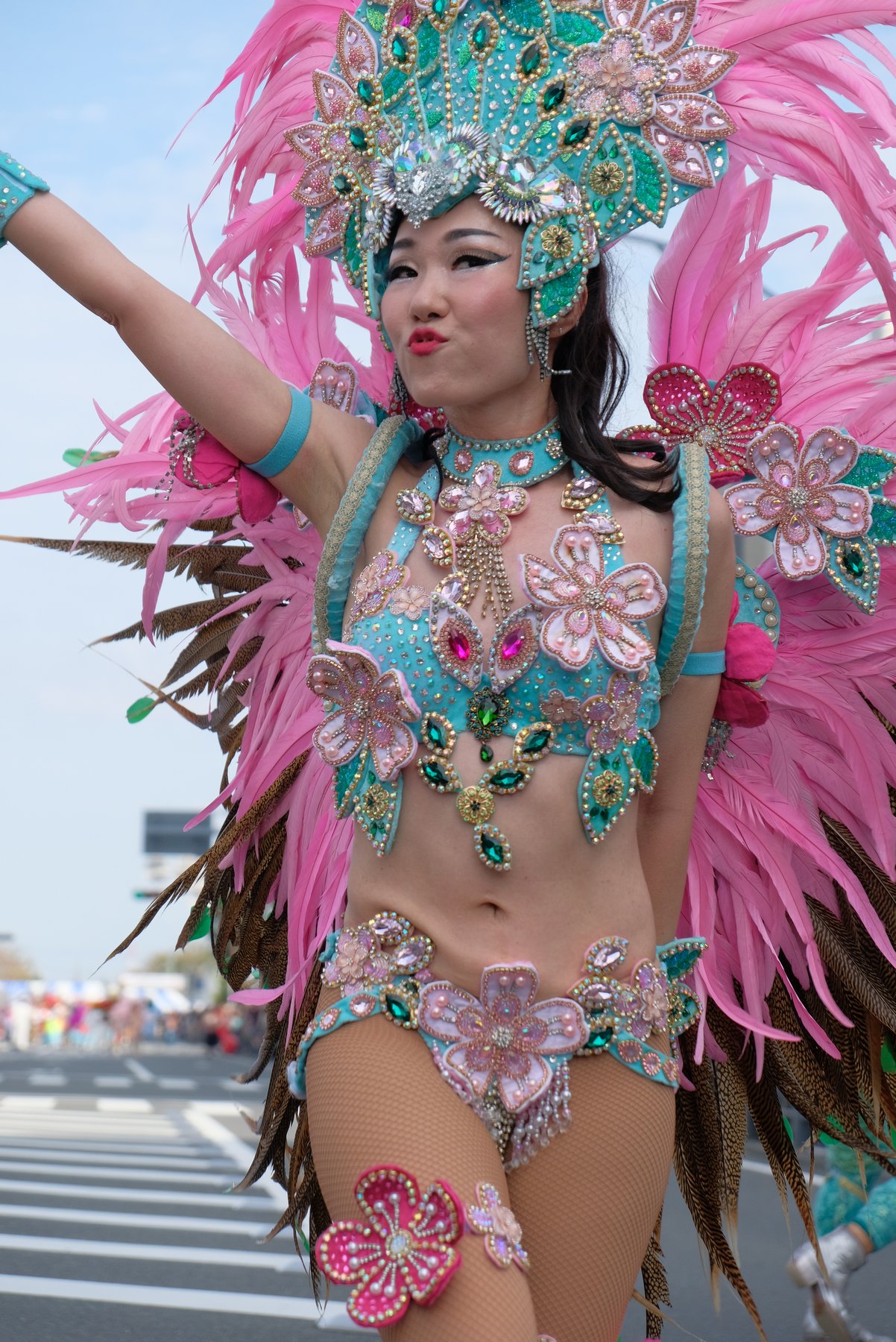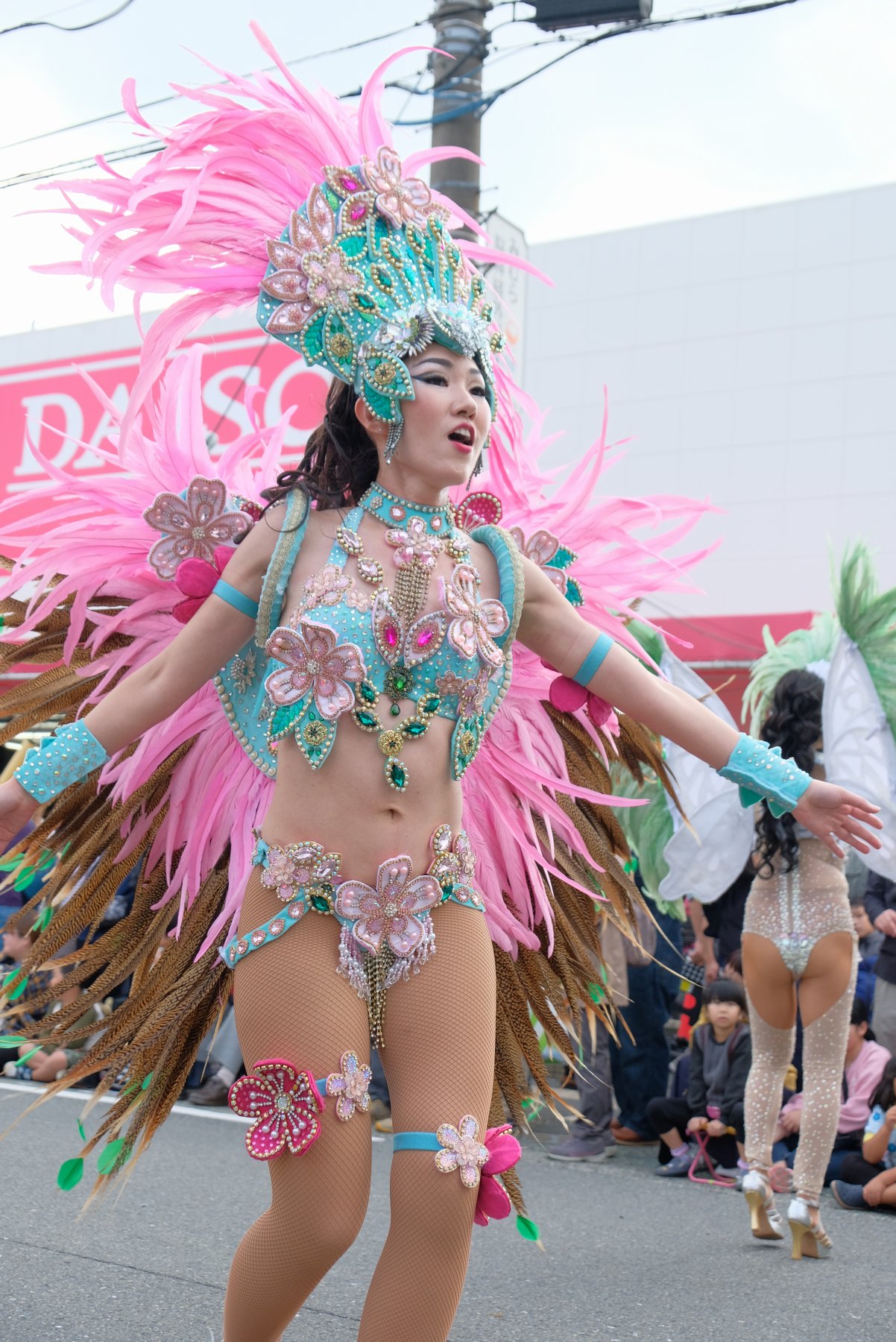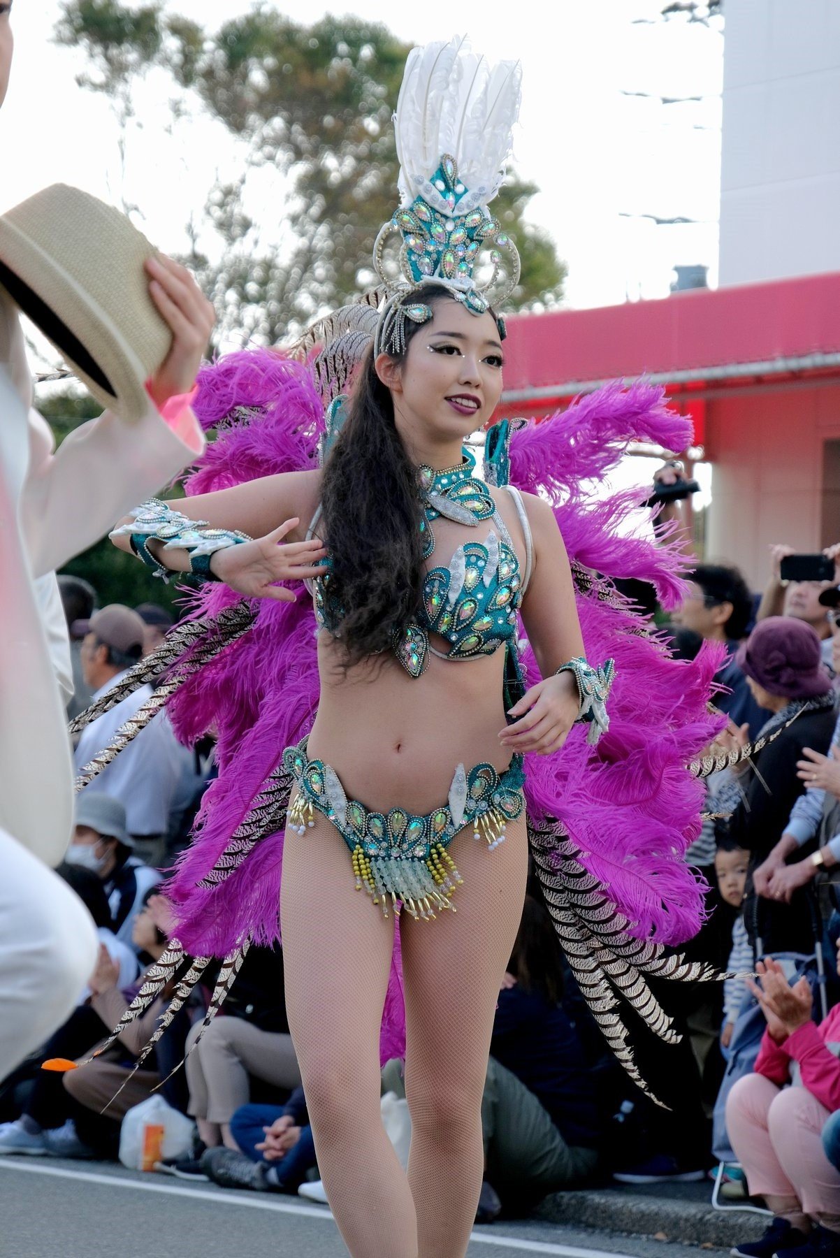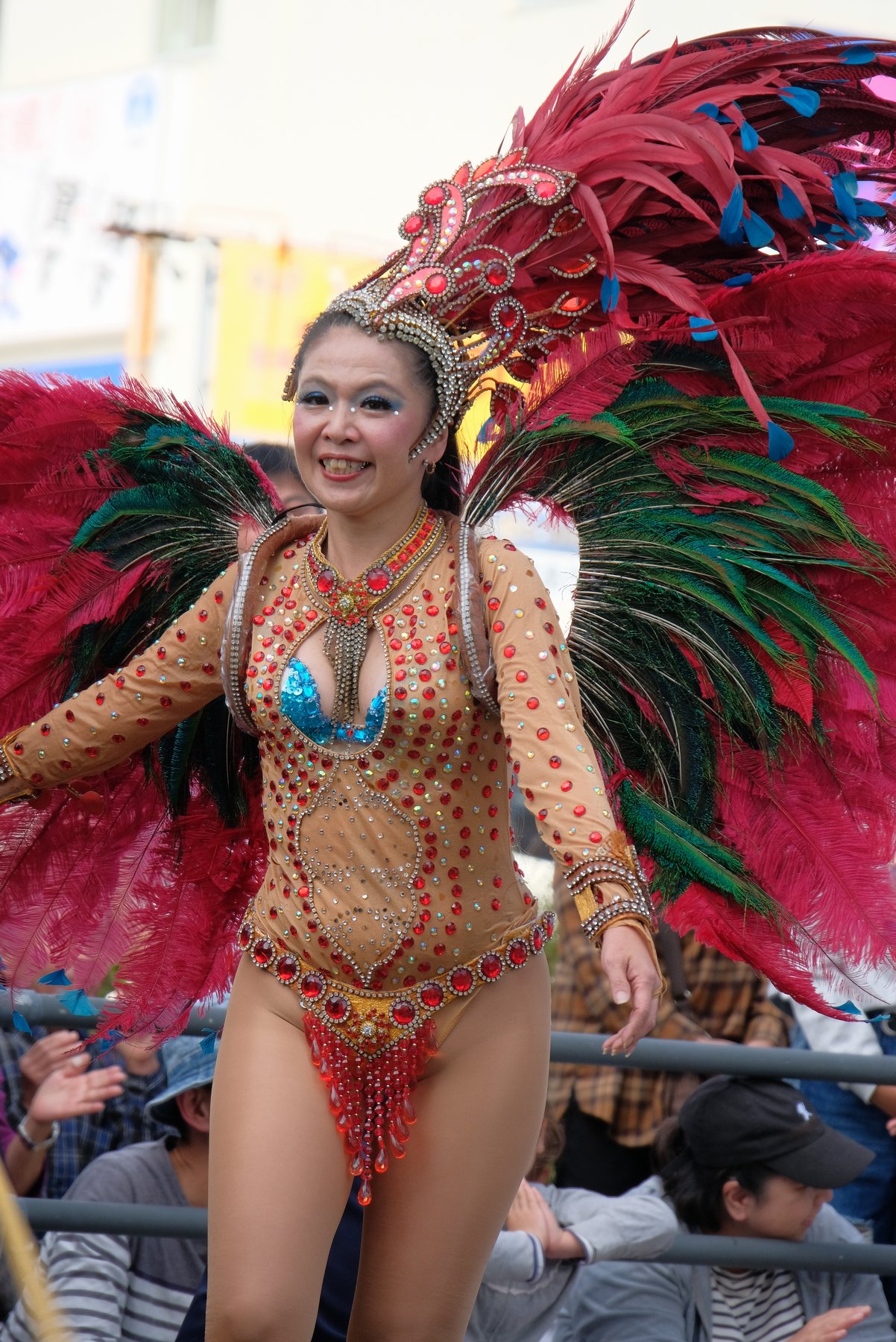 Three teams of Asakusa Samba Carnival, which is said to decide the top of Japan, will appear in the big parade of the event, for 21 times. The dancers in gorgeous costumes and the performances of the bateria (percussion instrument) corps greatly enlivened the people along the road.